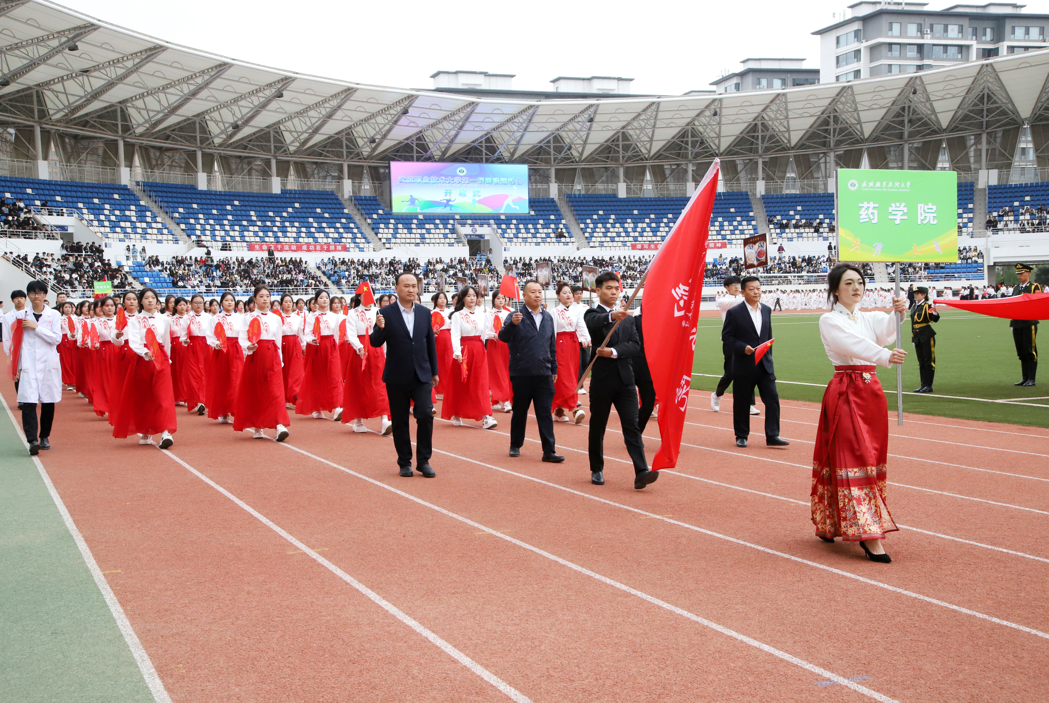 伴隨著激昂的《運動員進行曲》,國旗護衛(wèi)隊、彩旗隊、裁判員隊伍、各學院方陣依次入場,隊列步伐整齊有力,口號堅定嘹亮,充分展示了師生良好的精神風貌。