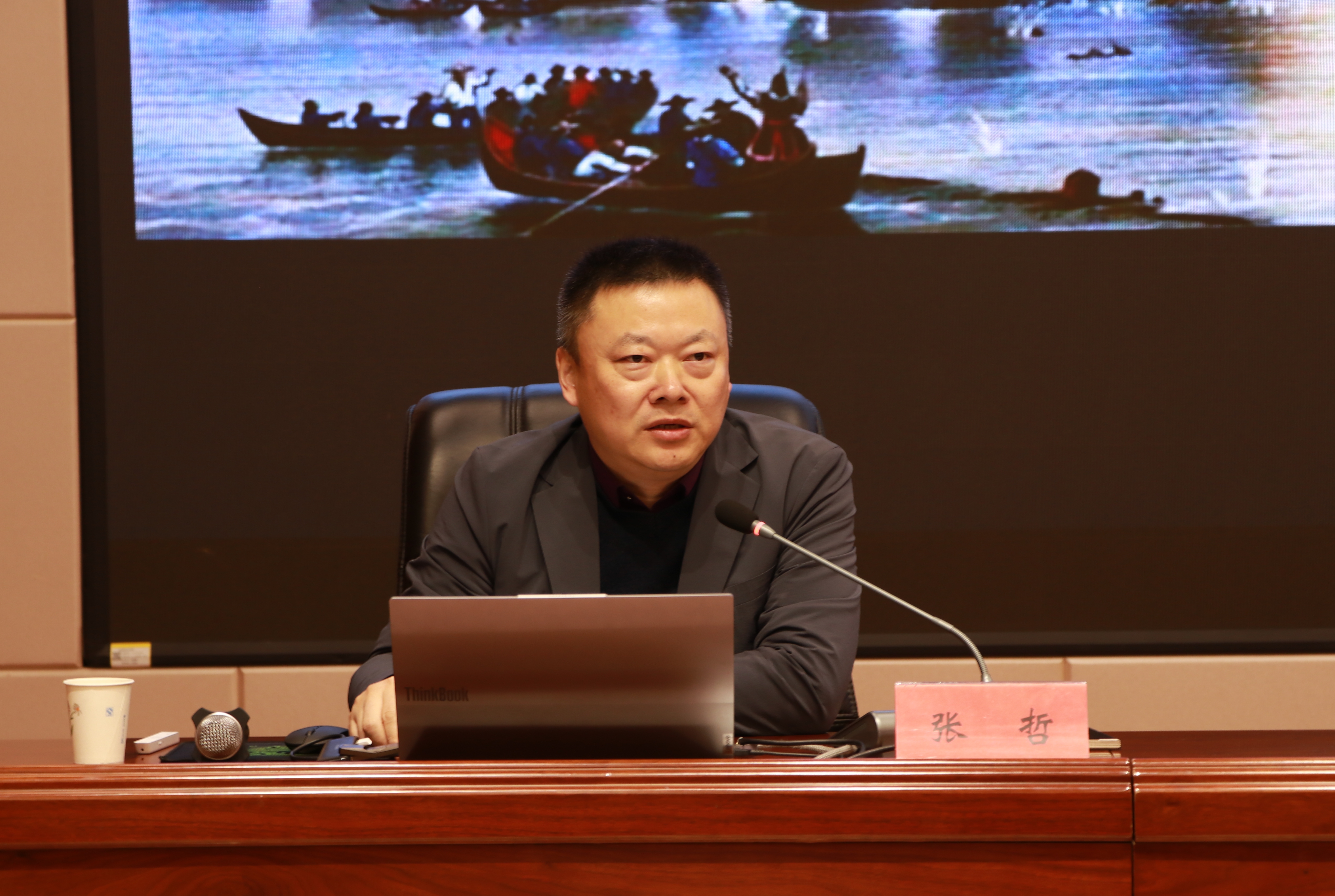 張哲教授立足理論前沿,緊扣時代脈搏,從馬克思主義中國化時代化新篇章、“兩個維護”、中國式現(xiàn)代化、守正創(chuàng)新、黨的建設(shè)、不負人民、奮力譜寫中國式現(xiàn)代化甘肅新篇章等七個方面系統(tǒng)闡釋了《習(xí)近平談治國理政》第五卷的深刻內(nèi)涵與時代價值,他結(jié)合豐富的歷史資料和現(xiàn)實案例,深入解讀了中國式現(xiàn)代化的理論體系與實踐路徑。報告邏輯嚴謹、內(nèi)涵豐富、語言生動,既有政治高度與理論深度,又具備實踐指導(dǎo)意義,為師生們?nèi)鏈蚀_理解《習(xí)近平談治國理政》第五卷的精神實質(zhì),把握其蘊含的馬克思主義立場、觀點、方法具有重要的指導(dǎo)作用。