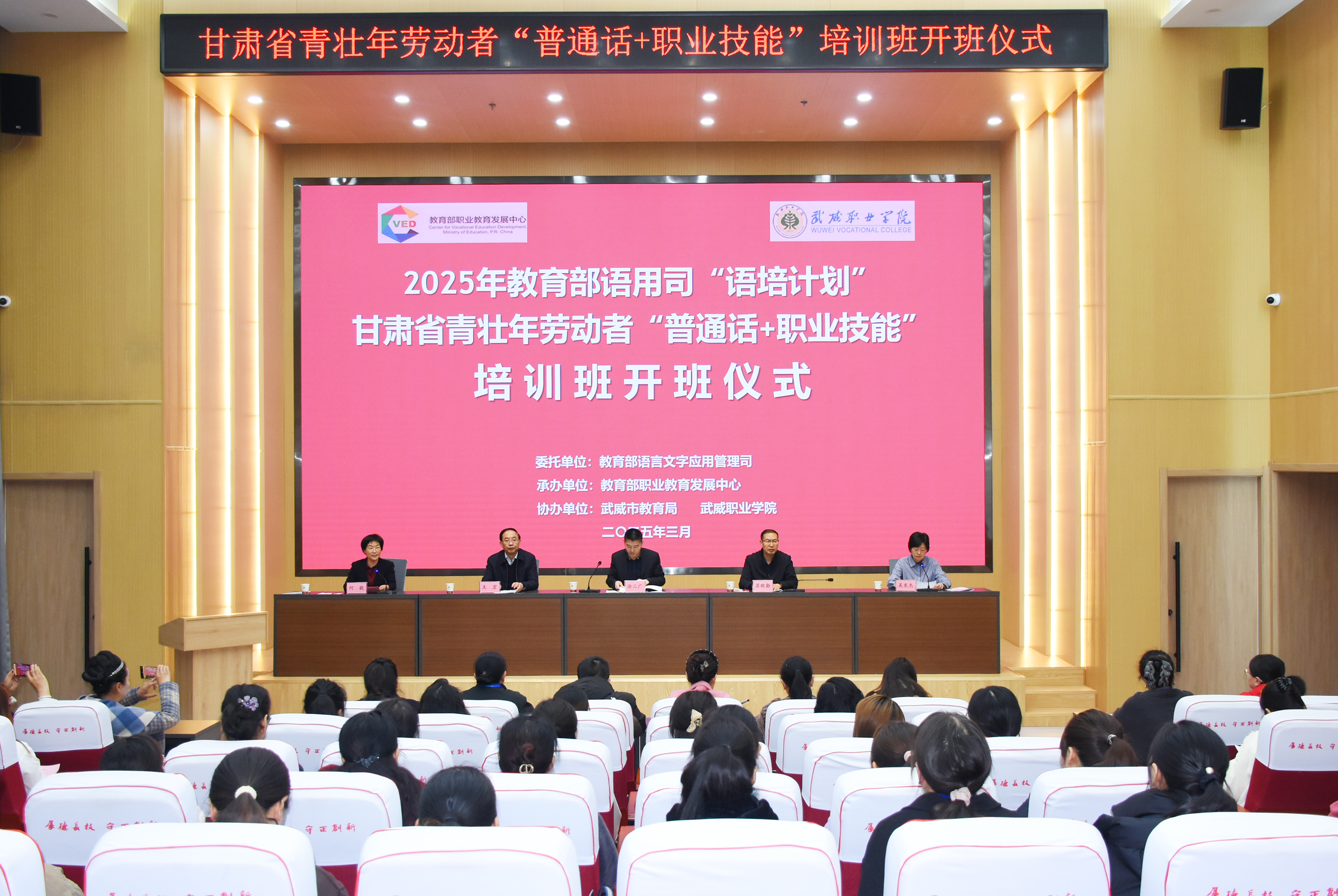 3月25日,教育部語用司“語培計劃”甘肅省青壯年勞動者“普通話+職業(yè)技能”培訓(xùn)班在學(xué)校成功開班。本次培訓(xùn)由教育部語用司主辦,教育部職業(yè)教育發(fā)展中心承辦,武威市教育局和學(xué)校協(xié)辦。本次培訓(xùn)是深入貫徹落實黨的二十大和二十屆二中、三中全會精神,落實全國教育大會精神,實施《教育強(qiáng)國建設(shè)規(guī)劃綱要(2024-2035年)》的重要舉措,旨在進(jìn)一步推廣國家通用語言文字的應(yīng)用,促進(jìn)鑄牢中華民族共同體意識。