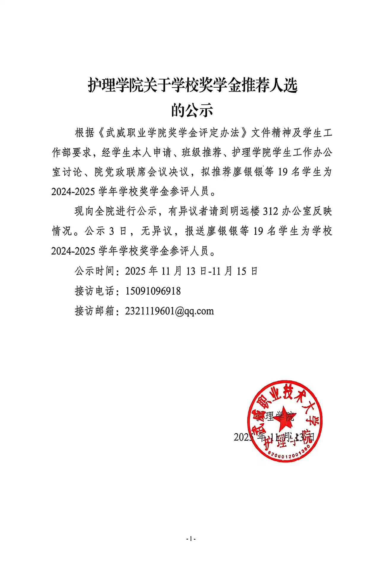 護理學(xué)院關(guān)于2025年國家助學(xué)金獲評人選的公示
