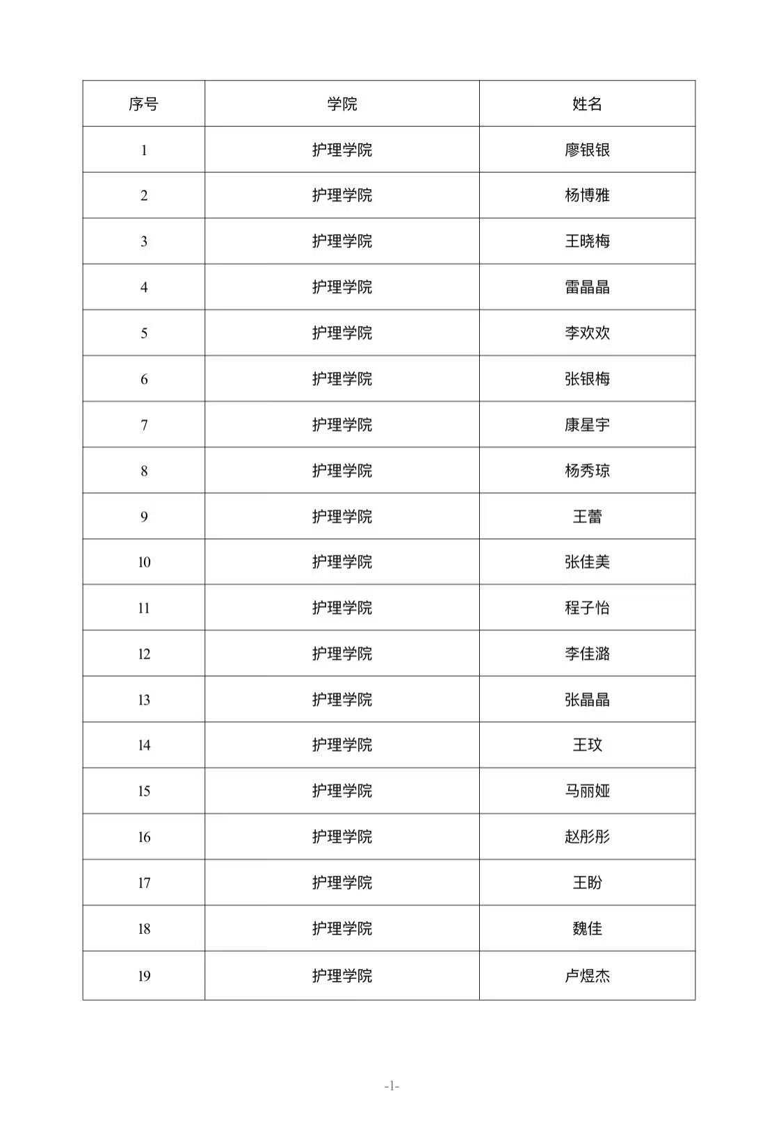 護理學(xué)院關(guān)于國家勵志獎學(xué)金推薦人選的公示