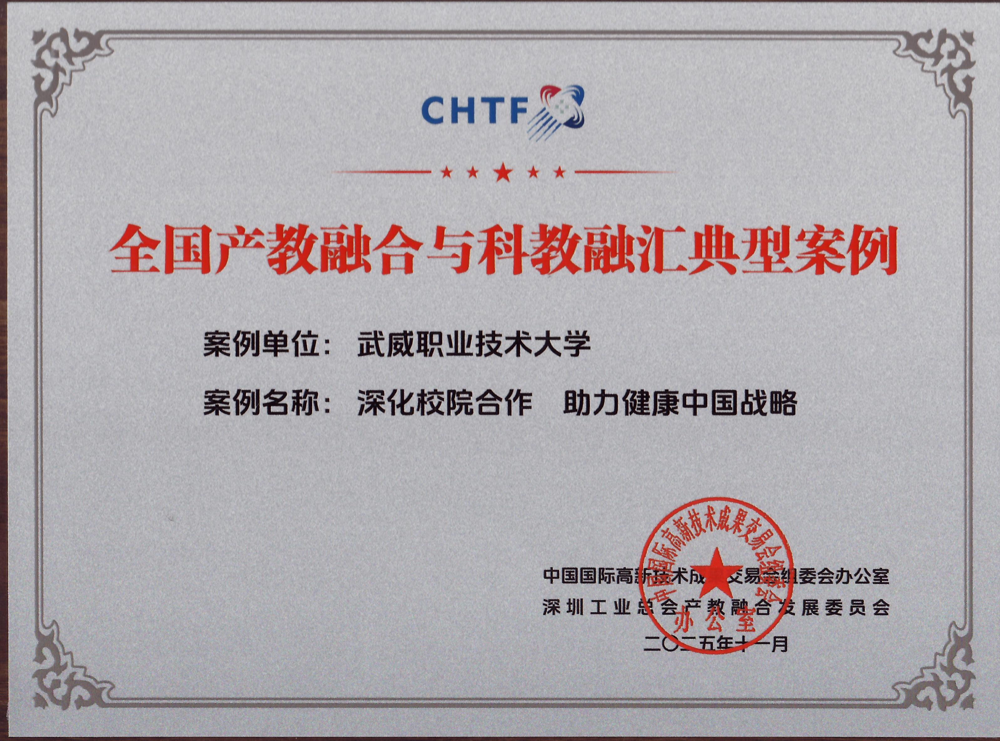 近日,第二十七屆中國國際高新技術(shù)成果交易會組委會公布產(chǎn)教融合與科教融匯典型案例評選結(jié)果,我校報送的《深化校院合作 助力健康中國戰(zhàn)略——武威職業(yè)技術(shù)大學與甘肅省武威腫瘤醫(yī)院開展校院合作新實踐》成功入選《全國產(chǎn)教融合與科教融匯典型案例匯編》,標志著我校在實施科教融匯行動,推動健康人才培養(yǎng)實踐獲得國家級平臺認可。