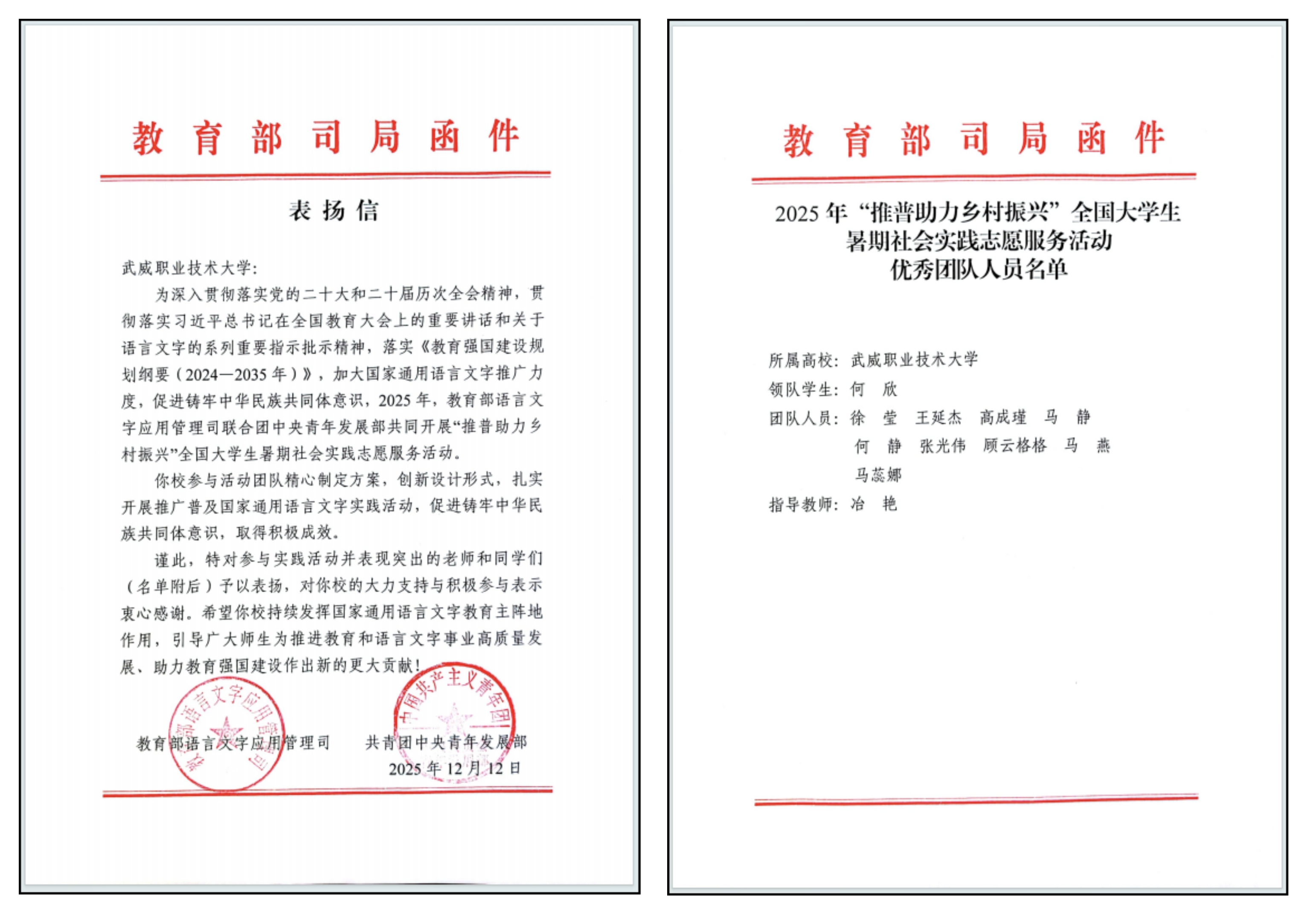 二、學(xué)校2025年“推普助力鄉(xiāng)村振興”全國(guó)大學(xué)生暑期社會(huì)實(shí)踐志愿服務(wù)活動(dòng)首次獲國(guó)家級(jí)優(yōu)秀團(tuán)隊(duì)表彰