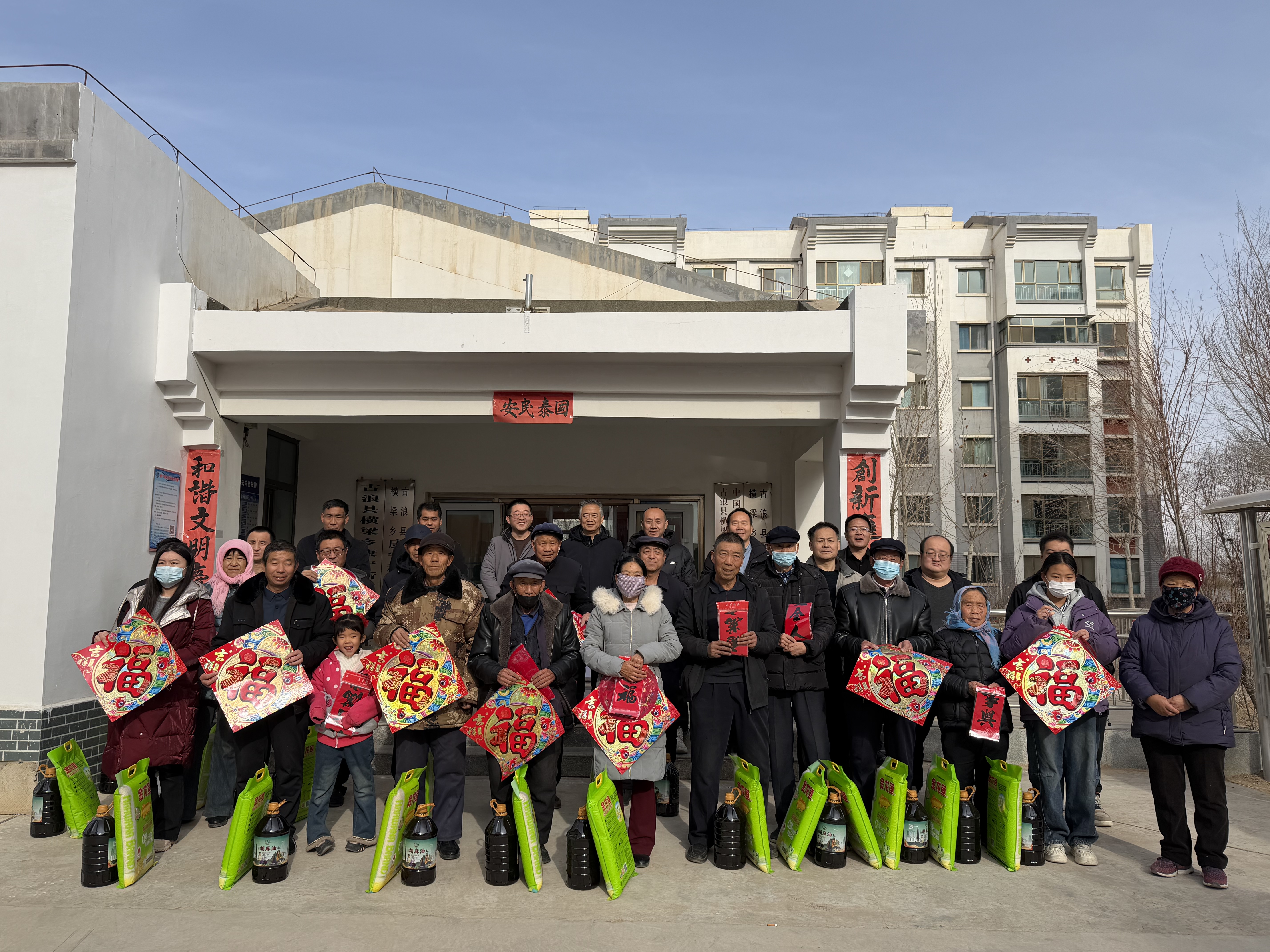 1月19日,學(xué)校在幫扶點(diǎn)古浪縣橫梁鄉(xiāng)康寧新村、幸福新村開(kāi)展春節(jié)前走訪慰問(wèn)和送溫暖、送春聯(lián)、送祝?;顒?dòng)。為困難群眾、結(jié)對(duì)幫扶戶、駐村工作隊(duì)送上春聯(lián)、福字、窗花、大米、胡麻油等慰問(wèn)品,并聯(lián)合開(kāi)展文化共建座談活動(dòng),將學(xué)校的關(guān)心關(guān)愛(ài)傳遞到了基層群眾心里,進(jìn)一步豐富了群眾精神文化生活,營(yíng)造了祥和、喜慶的節(jié)日氛圍。