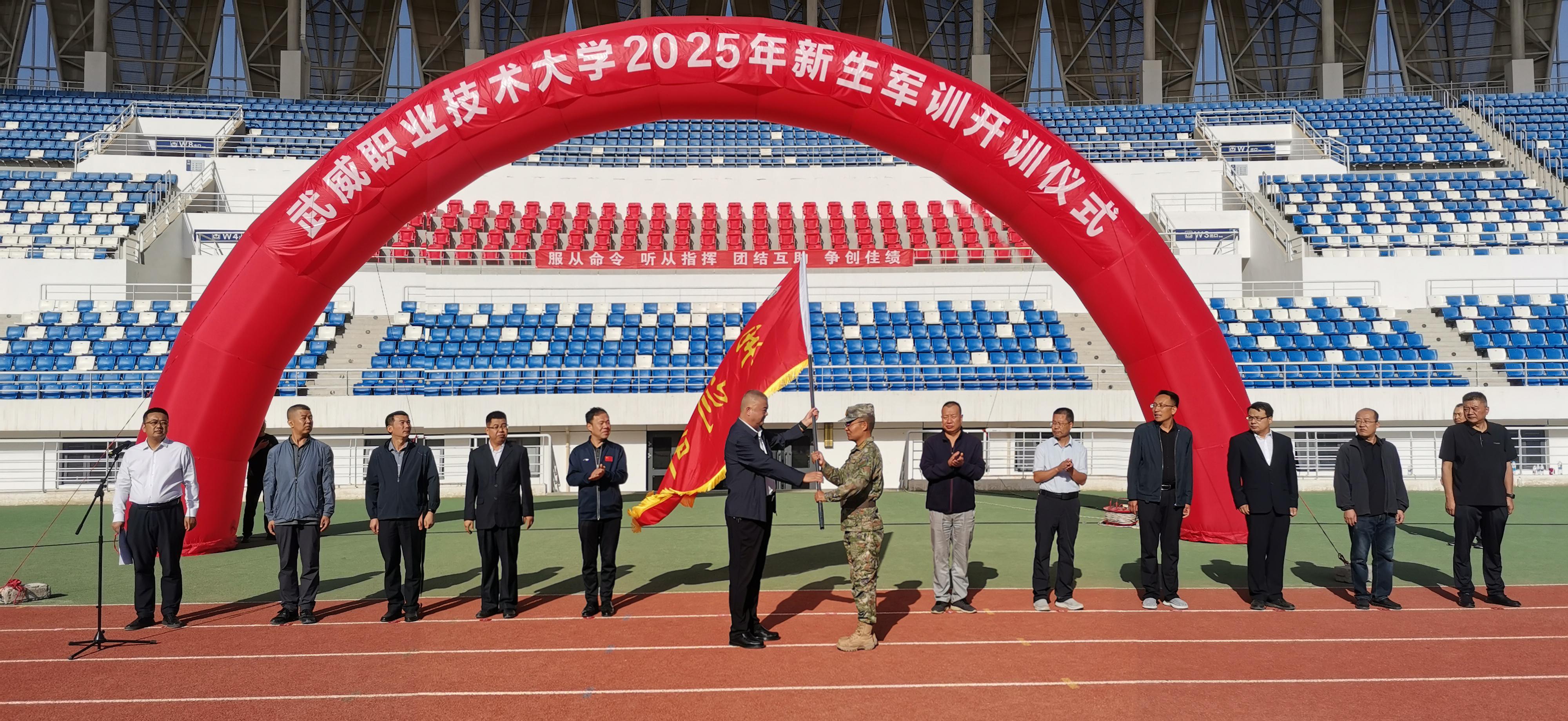 儀式最后,王守云代表學(xué)校向軍訓(xùn)團授旗,并宣布“武威職業(yè)技術(shù)大學(xué)2025級新生軍訓(xùn)開訓(xùn)”,2025級新生軍訓(xùn)正式拉開序幕。